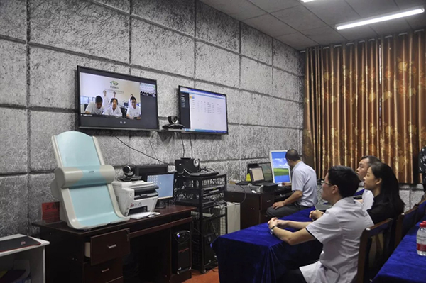 启动仪式当天,县医院的眼科医生利用远程医疗与何氏眼科医院专家共同为当地的眼底病患者进行了远程会诊